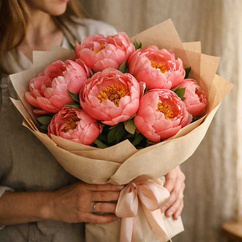 Май–июнь — пик сезона: актуальные цены, максимум сортов, свежайшие российские срезы. С июля идёт импорт (Голландия, Израиль) — выше по стоимости, но доступно круглый год. Зимой пион — премиум-цветок. Оставляйте заранее — в свадебный сезон пионы разбирают за 2–3 дня.